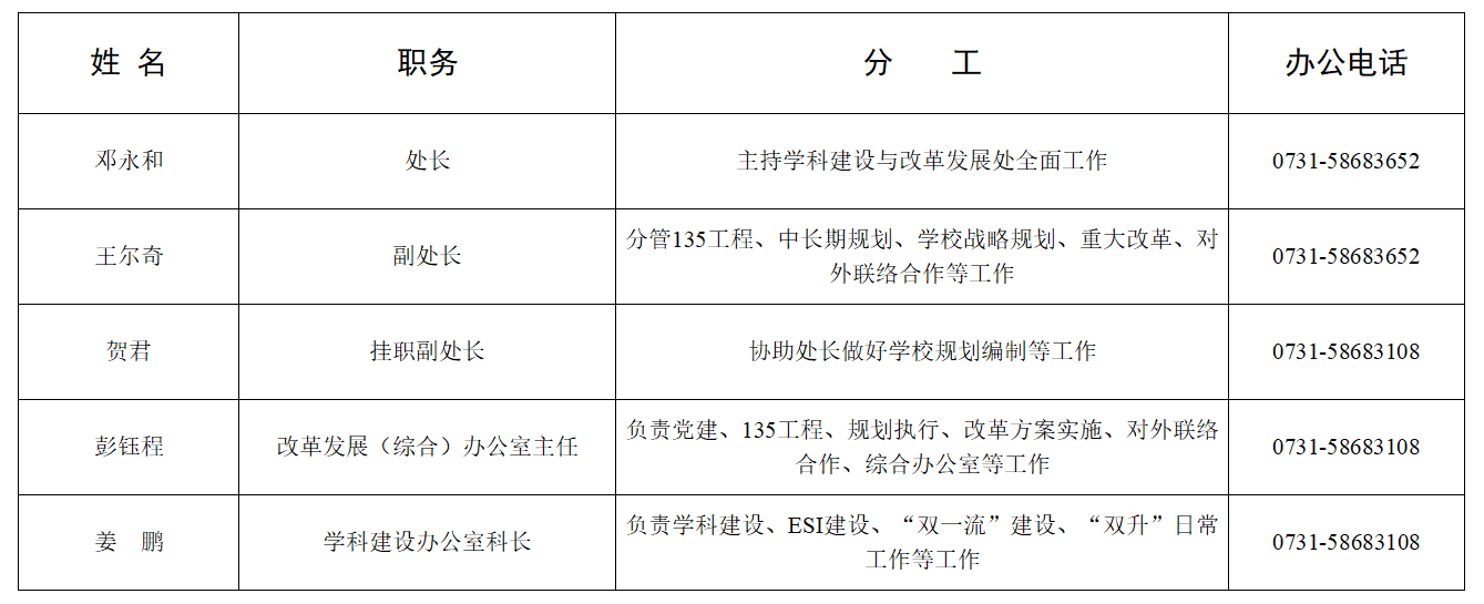 学科建设与改革发展处机构设置