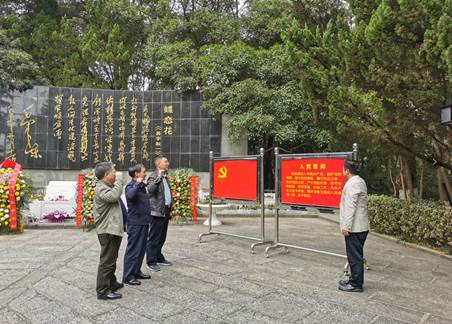 在毛主席的《蝶恋花·答李淑一》诗碑前,大家肃立默哀、鞠躬致敬。支部书记李靖带领大家重温入党誓词、庄严宣誓。