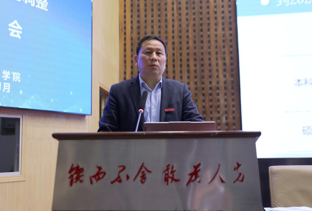 易兵就如何贯彻落实《两优方案》,进一步推进学校学科专业优化调整工作进行了详细部署。他指出,专业是人才培养的基石,必须精准把握专业内涵的诸多要素。一是要聚焦“师资”,加强教师队伍建设;二是要精准把握“课程”,精心设计课程体系;三是要牢牢把握“条件”,全力抓好实验室、校外研究实践基地等硬件设施建设;四是要着力把握“教材”,积极培育数字化教材;五是要全面把握“环境”,注重环境育人;六是要重点把握“成效”,切实抓好人才培养质量。
